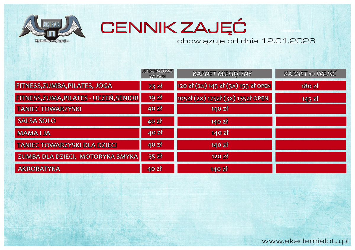Cennik zajęć